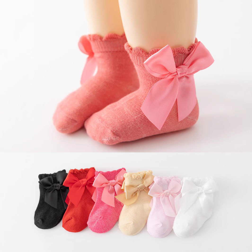 جوارب بناتية بألوان صلبة متعددة الاستخدامات مع فيونكة على شكل أميرة