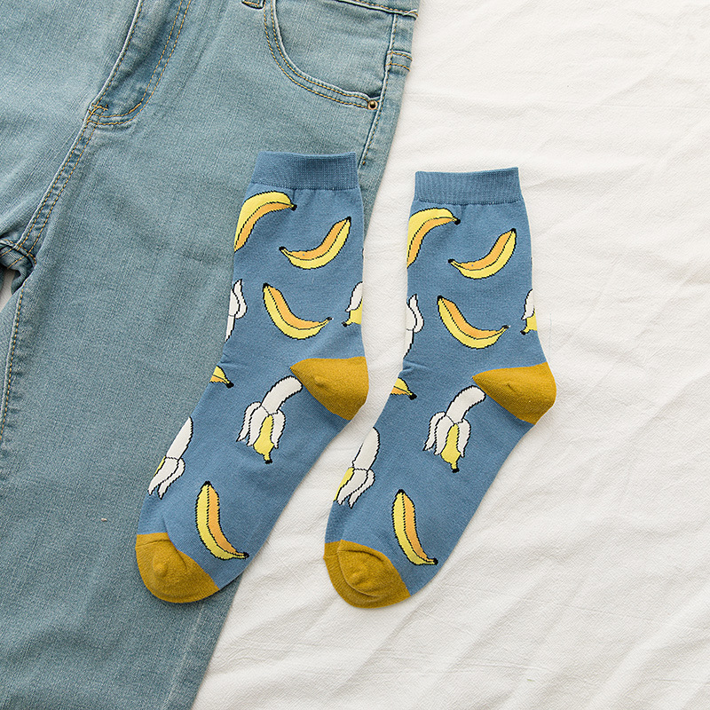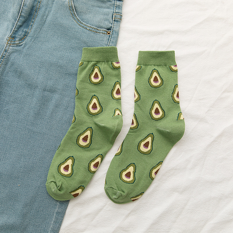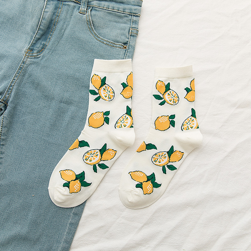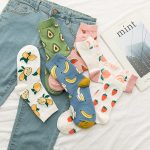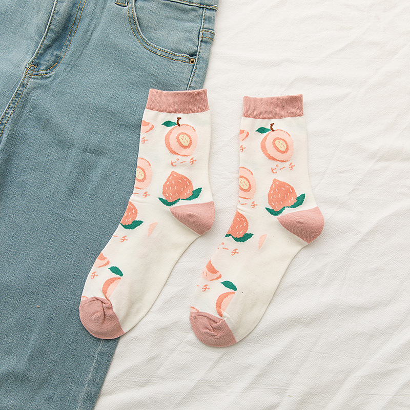 جوارب قطنية نسائية يابانية لطيفة بنقشة فاكهة
