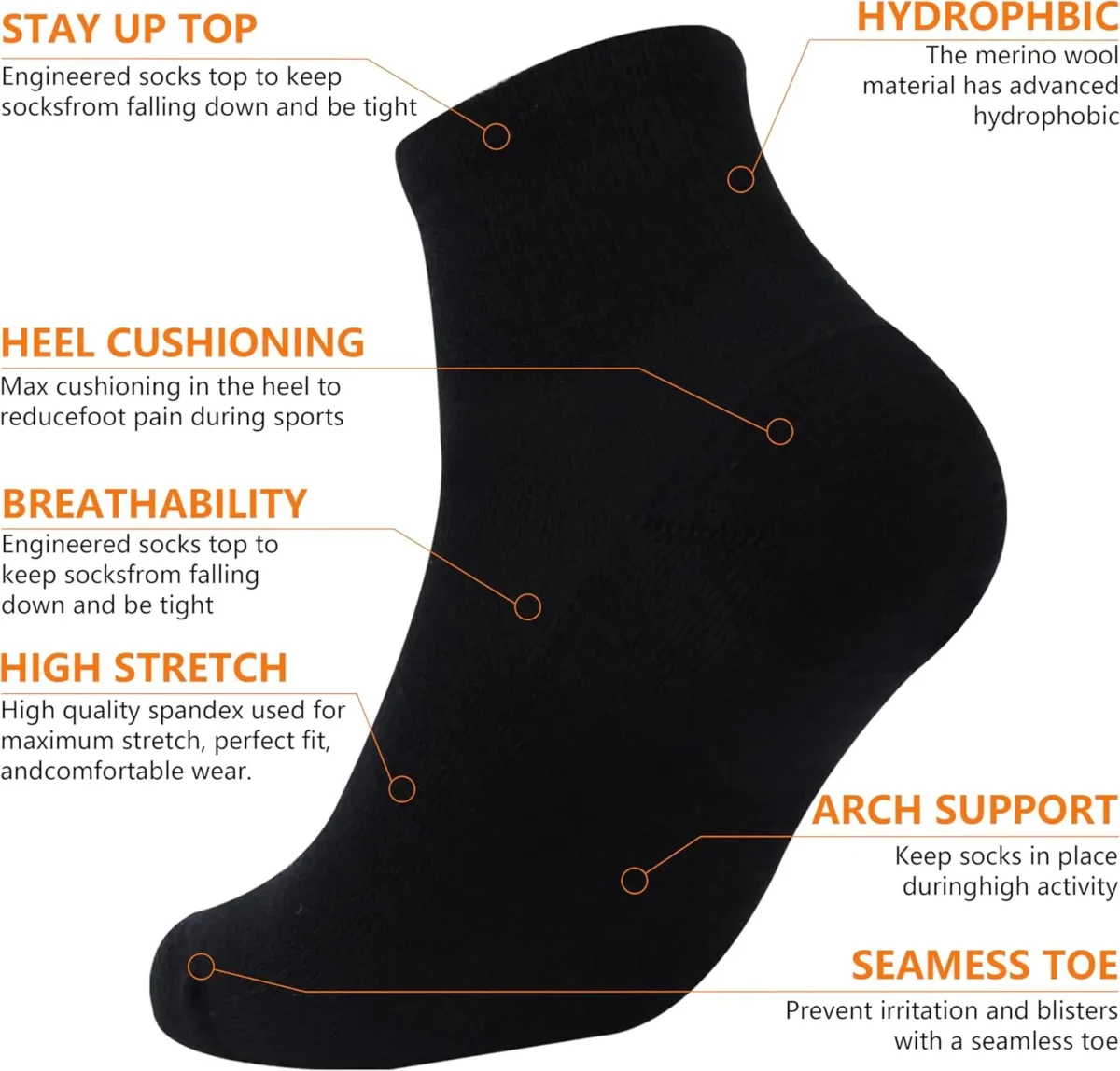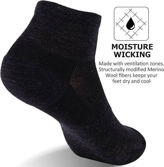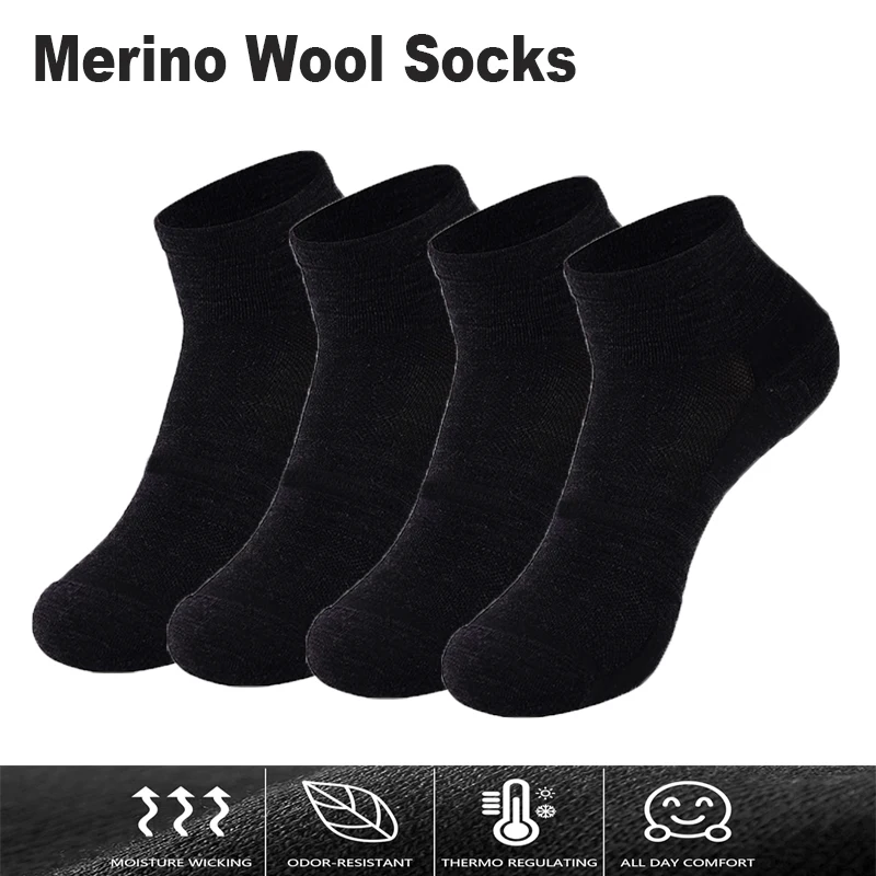 جوارب للكاحل مصنوعة من صوف ميرينو بنسبة 65% للرجال والنساء، جوارب رياضية خفيفة للغاية ورقيقة للجري والتنس والجولف، تمتص الرطوبة