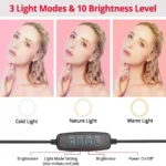 حامل هاتف حلقي مزود بضوء LED لصور السيلفي مع ذراع قابل للطي