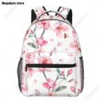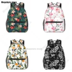 حقيبة ظهر بنقشة أوراق النخيل الاستوائية الزهرية – حقيبة ظهر مدرسية وسفرية وردية اللون لجميع الأعمار