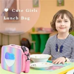 حقيبة غداء للأطفال بتصميم قلب قوس قزح – حقيبة بينتو معزولة للبنات، للنزهات والمدرسة
