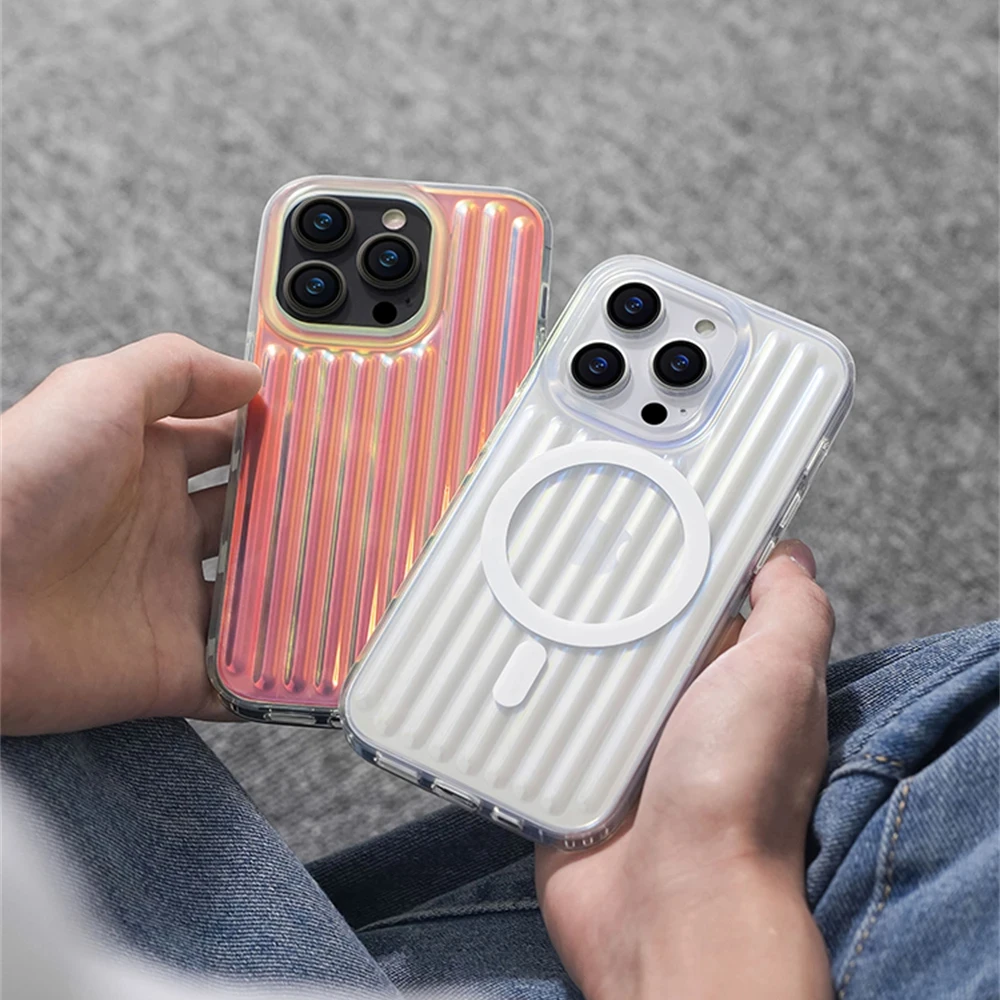 حقيبة ليزر عصرية بنمط Magsafe لحافظة iPhone 17 16 15 14 13 Max حافظة شحن لاسلكي مغناطيسي من السيليكون الناعم