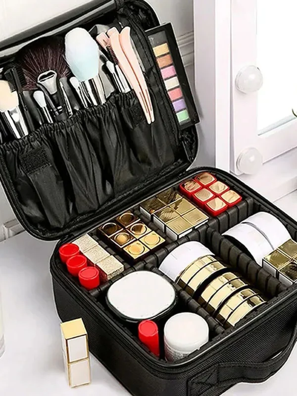 حقيبة مستحضرات تجميل فاخرة من جلد البولي يوريثان – حقيبة سفر كبيرة السعة لمستحضرات التجميل وأدوات النظافة