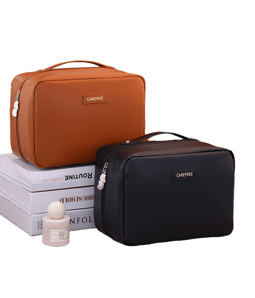 حقيبة مستحضرات تجميل فاخرة من جلد البولي يوريثان – حقيبة سفر كبيرة السعة لمستحضرات التجميل وأدوات النظافة