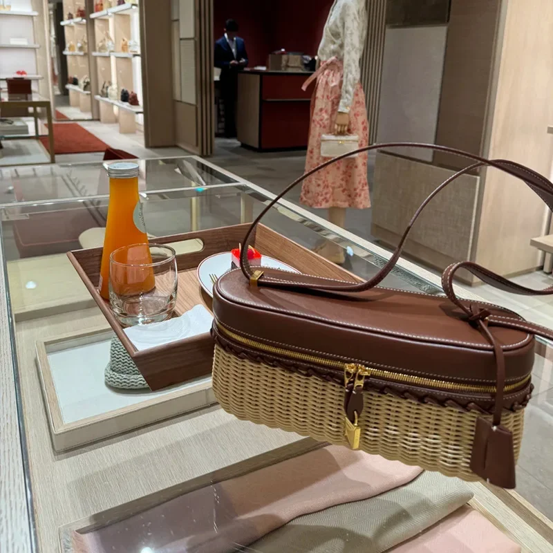 حقيبة يد لورو بيانا الجلدية المنسوجة من الخيزران