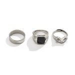 خاتم رجالي مربع الشكل بثلاث قطع على شكل ضفدع