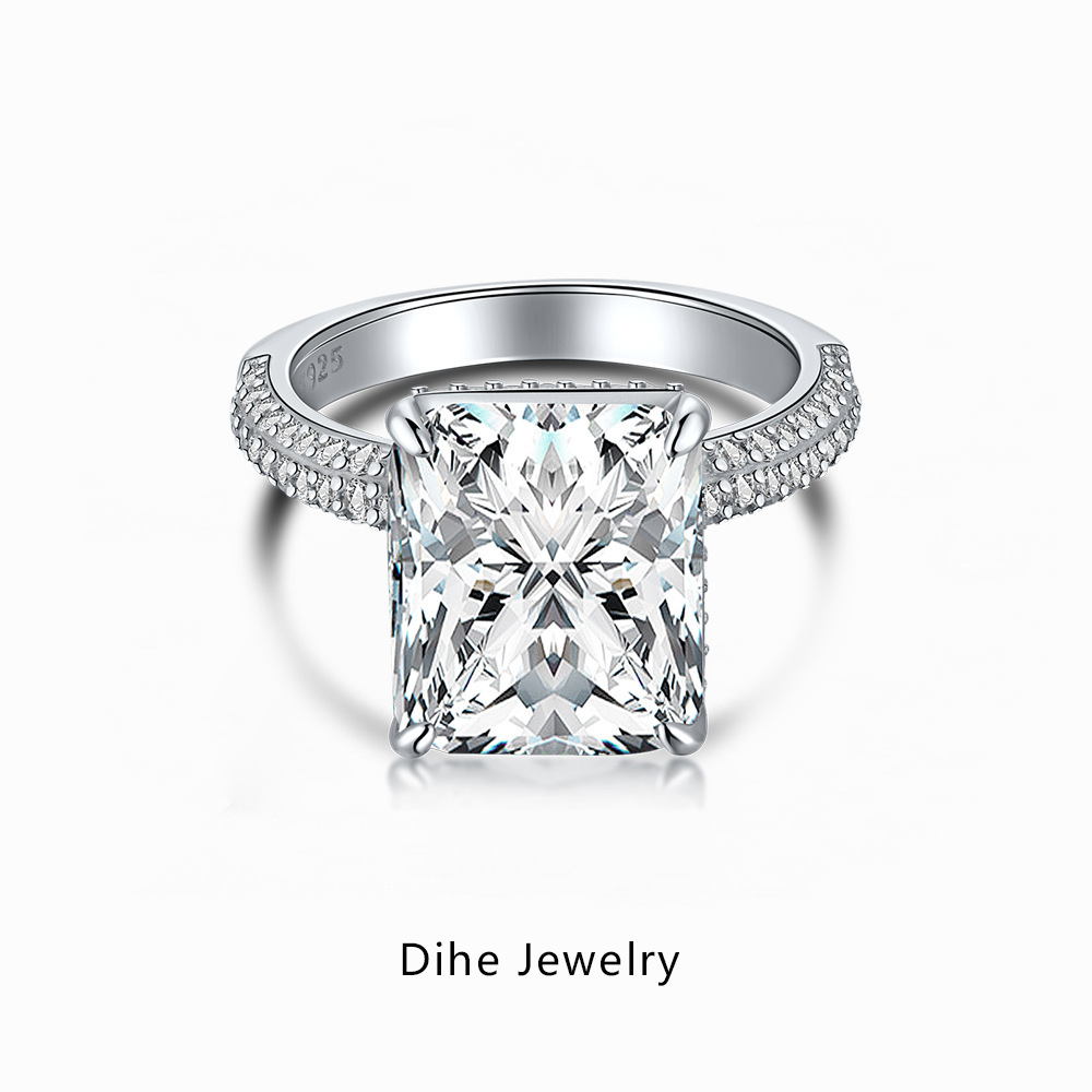 خاتم فضة إسترليني عيار 925، مربع الشكل، للنساء