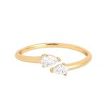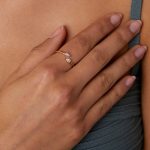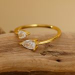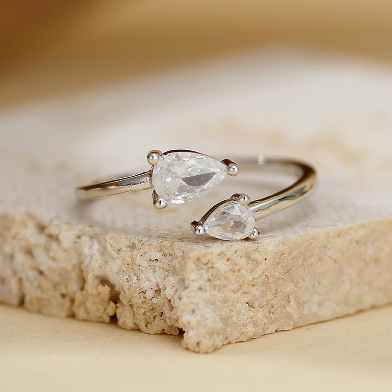 خاتم فضي بتصميم قطرة ماء مرصع بالزركون، يتميز بإضاءة خفيفة فاخرة وأنيقة، مناسب للتنقل اليومي.