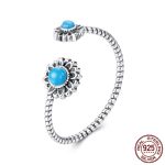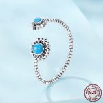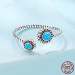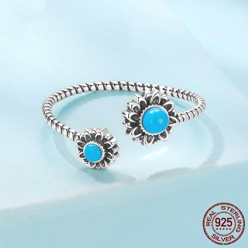 خاتم مفتوح عتيق من الفضة الإسترليني عيار 925 مرصع بزهرة عباد الشمس والفيروز