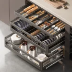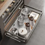 خزانة سلة المطبخ المصنوعة من الفولاذ المقاوم للصدأ مع درج لتخزين الأطباق