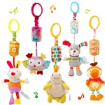 خشخيشات حسية معلقة للأطفال – ألعاب حيوانات محشوة مع عضاضة لسرير الأطفال وعربة الأطفال