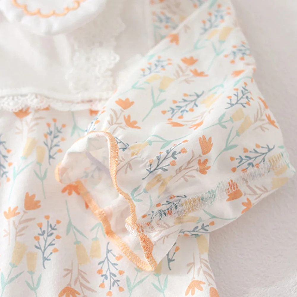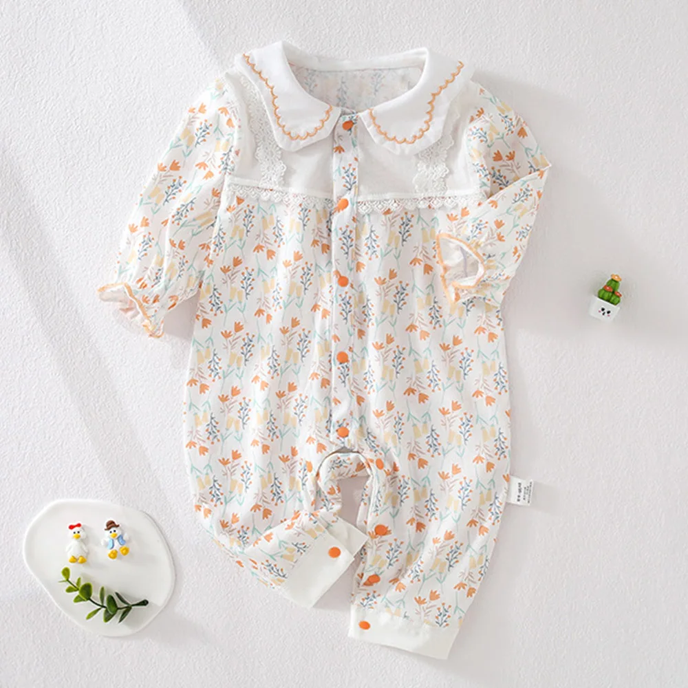 رومبير للبنات الرضع بأكمام طويلة من القطن بتصميم زهور صيفي رقيق، جمبسوت للأطفال الرضع، مكيف هواء، ياقة بيتر بان، ملابس أطفال