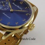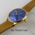 الميناء: أزرق/بيج، عقربان صغيران للثواني عند موضع الساعة ٩