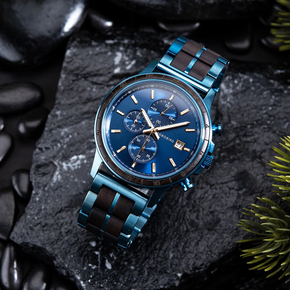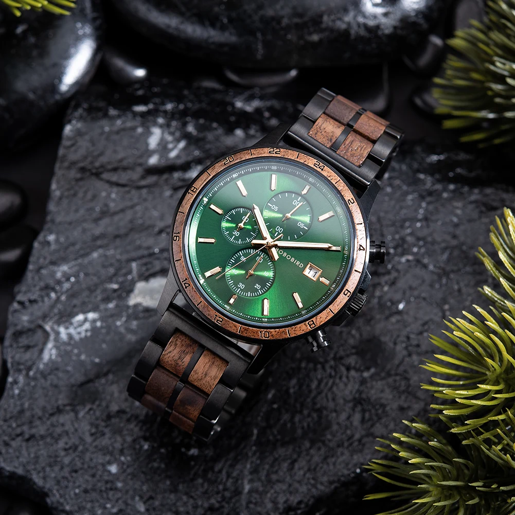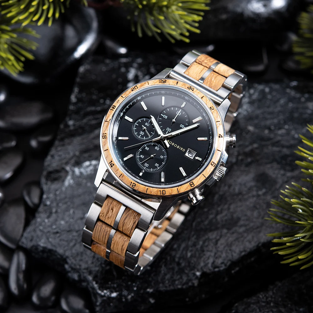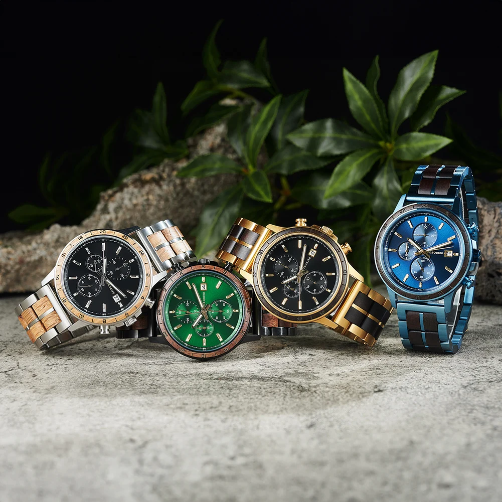 ساعة بوبو بيرد الخشبية الفاخرة للرجال بسوار من الكوارتز