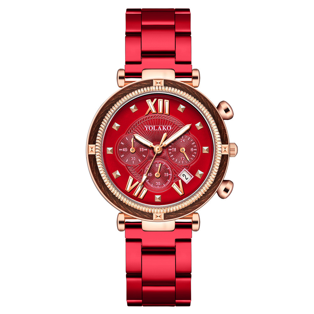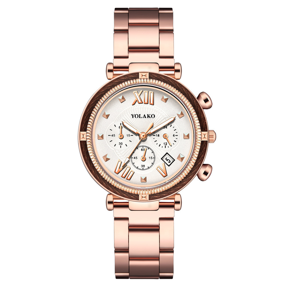 ساعة كوارتز نسائية من الفولاذ المعدني بتقويم ثلاثي العيون
