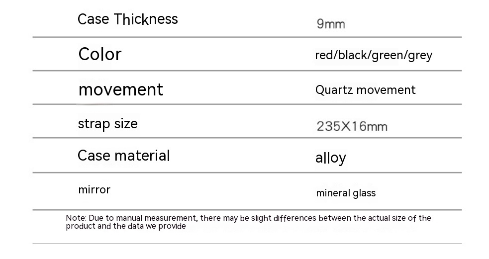 مقاس سوار الساعة: العرض ١٦ مم، الطول الإجمالي حوالي ٢٣.٥ سم
