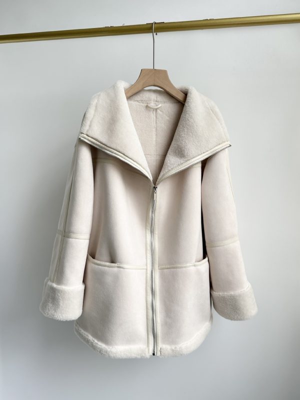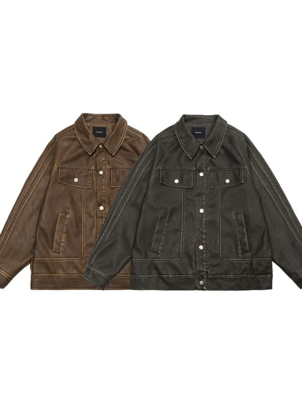 سترة جلدية أنيقة وجميلة لركوب الدراجات النارية من الجلد الصناعي مع ياقة واسعة للنساء