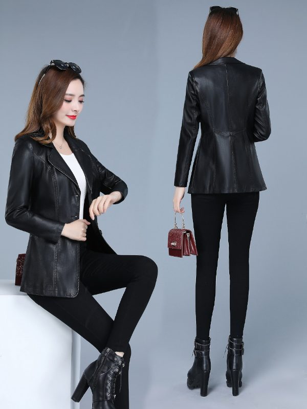 معطف جلدي نسائي ضيق من البولي يوريثان