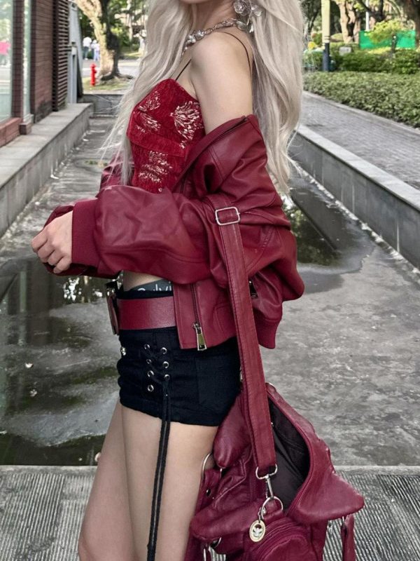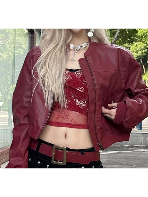 سترة جلدية من البولي يوريثان بنفس الطراز للخريف والشتاء للنساء
