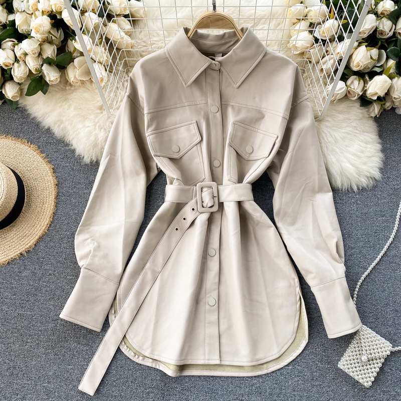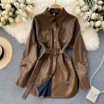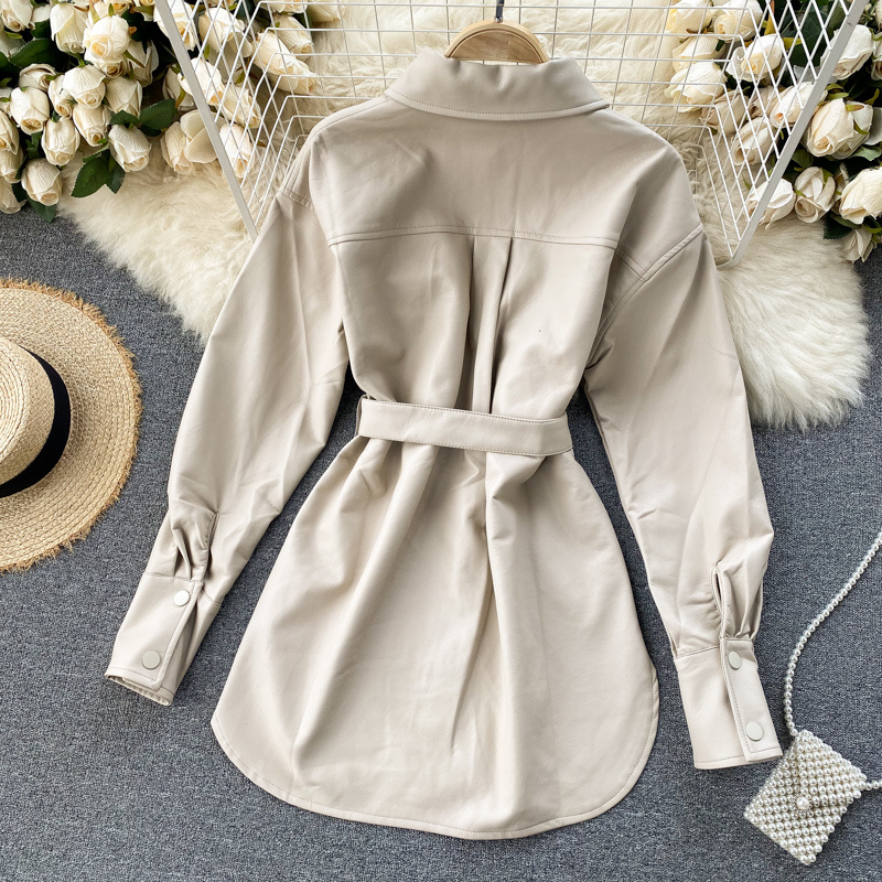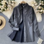 سترة جلدية من البولي يوريثان بنفس الطراز للخريف والشتاء للنساء