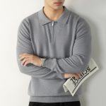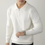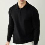 سترة رجالية رسمية بنصف سحاب وياقة بولو محبوكة