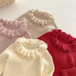 سترة عيد الميلاد للأطفال، ملابس شتوية للبنات، بلوفر محبوك بلون واحد، سترات عيد الميلاد للأطفال الصغار