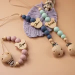 سلسلة لهاية خشبية مخصصة للأطفال – حامل لهاية من خرز السيليكون وقلادة عضاضة | هدية للمولود الجديد وواقي حلمة