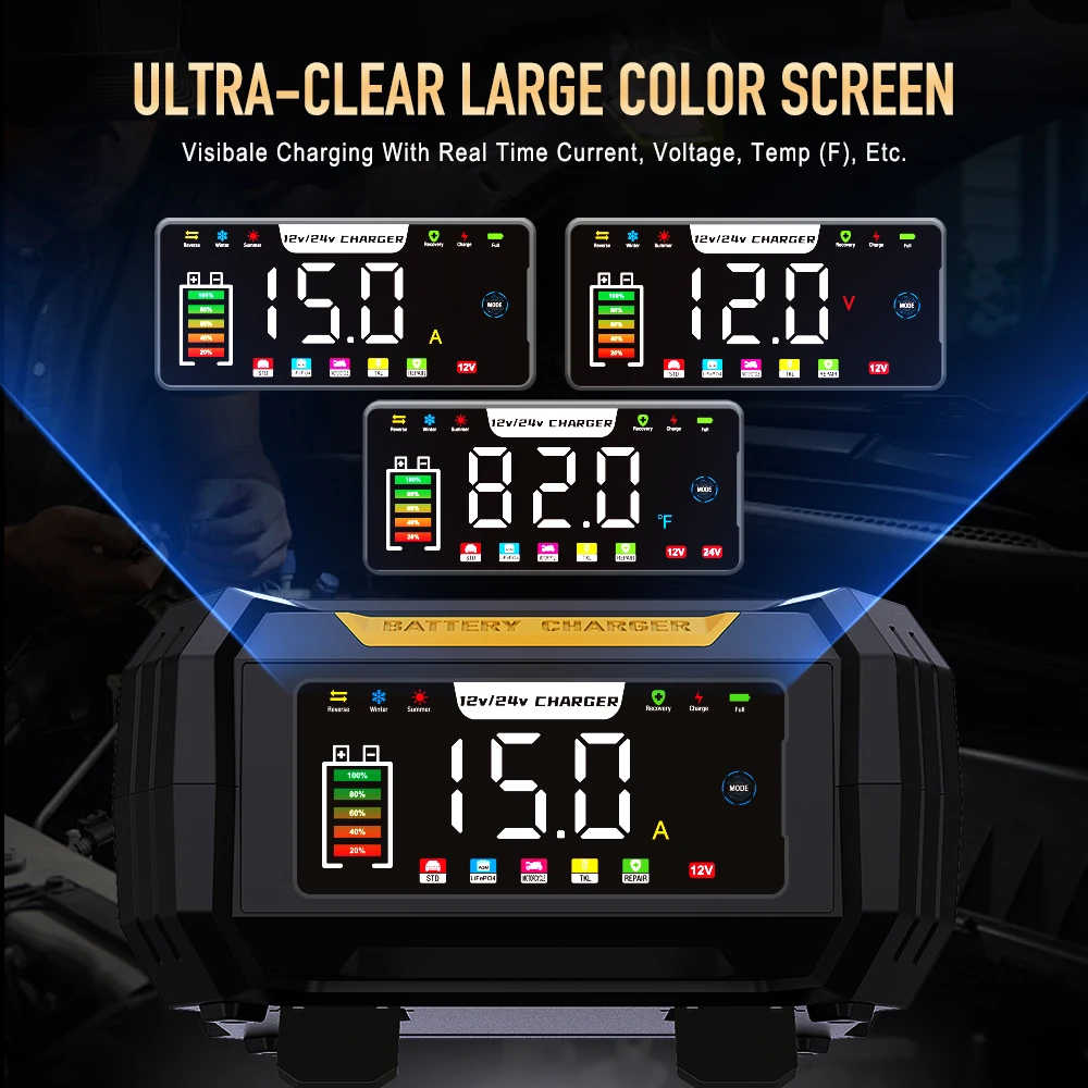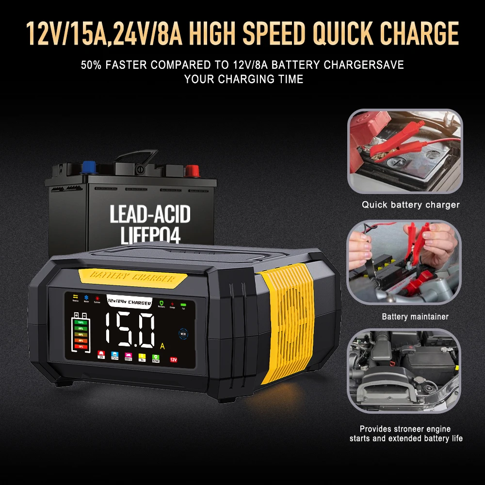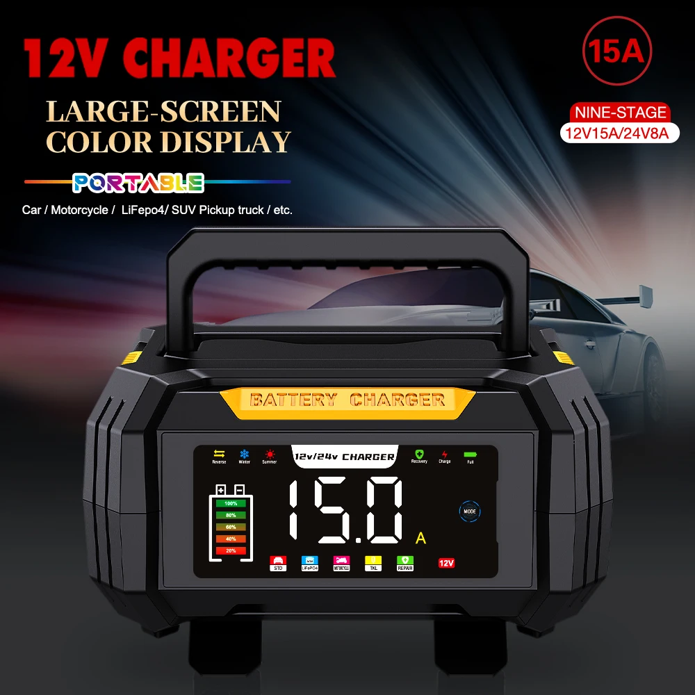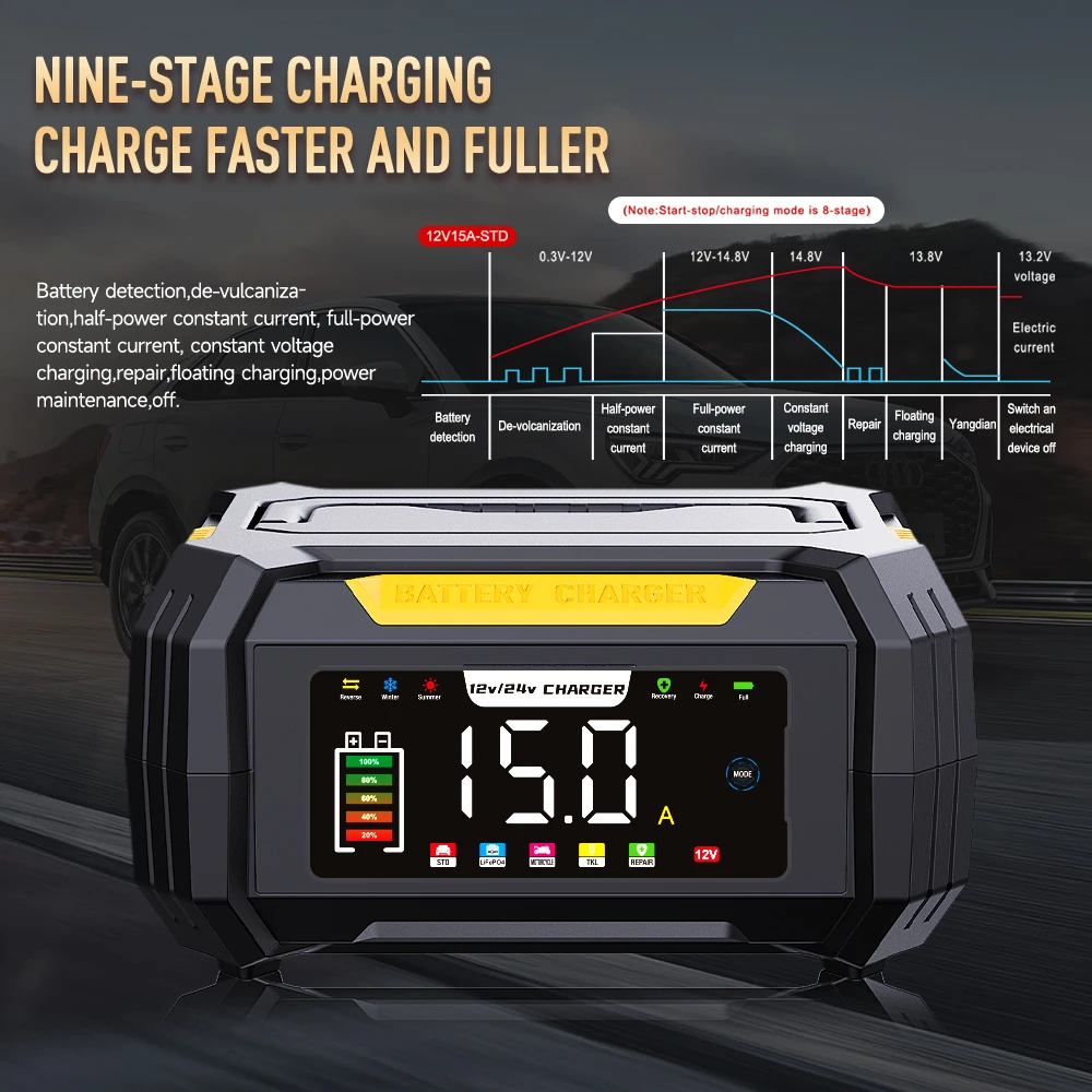 شاحن بطارية السيارة بمقبس AU 12 فولت 15 أمبير/24 فولت 8 أمبير لإصلاح النبض الذكي