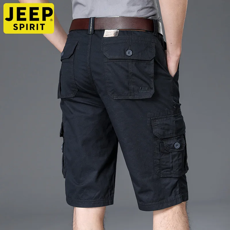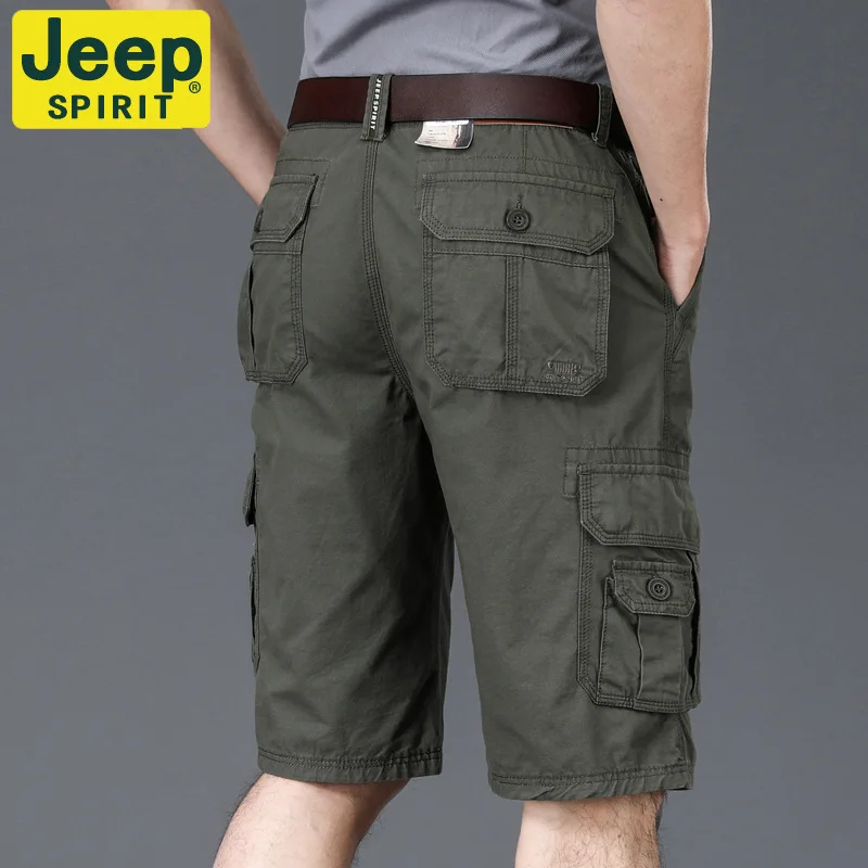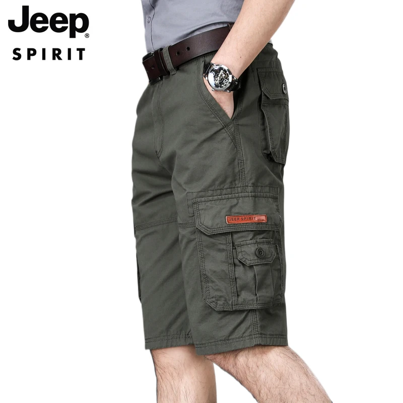 شورت رجالي JEEP SPIRIT ربيعي وصيفي متعدد الجيوب بخمس نقاط مصنوع من القطن بنسبة 100%، بنطلون فضفاض مناسب للأنشطة الخارجية والرياضات الترفيهية وتسلق الجبال