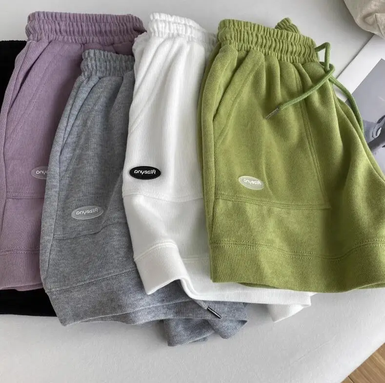 شورت رياضي ترفيهي جديد للربيع والصيف بخصر عالٍ مستقيم بلون سادة وواسع الساق للنساء، 5 ألوان