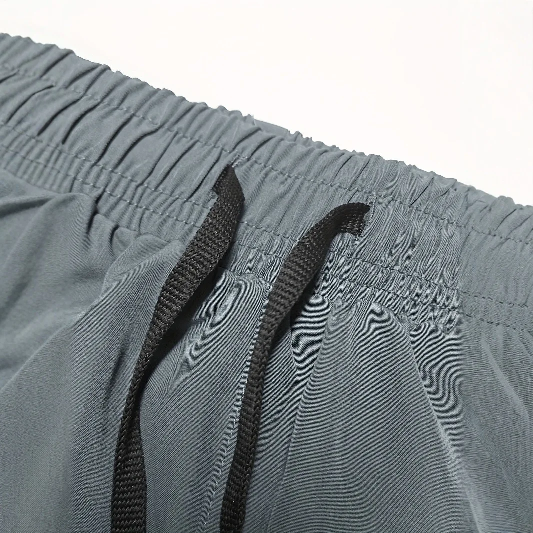 شورت رياضي صيفي رجالي – سريع الجفاف، خصر مطاطي برباط، أزرق داكن وأسود مع لمسات بيضاء، بوليستر/إيلاستان