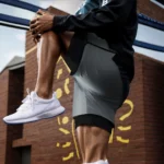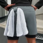 شورت رياضي صيفي رجالي – سريع الجفاف، خصر مطاطي برباط، أزرق داكن وأسود مع لمسات بيضاء، بوليستر/إيلاستان