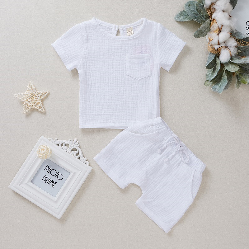 شورت قصير الأكمام من قطعتين من القطن المزدوج الكريب