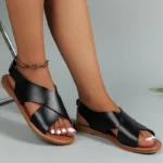 صنادل نسائية صيف 2025، أحذية مسطحة نسائية، مصنوعة من جلد البولي يوريثان الناعم، صنادل نسائية صيفية، أحذية شاطئ نسائية
