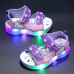 صنادل هالو كيتي LED للبنات الصغيرات 2025 – أحذية شاطئ كاجوال مضادة للانزلاق