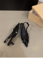 صندل فرنسي من الأقليات ذو كعب عالٍ فضي اللون ومقدمة مغلقة