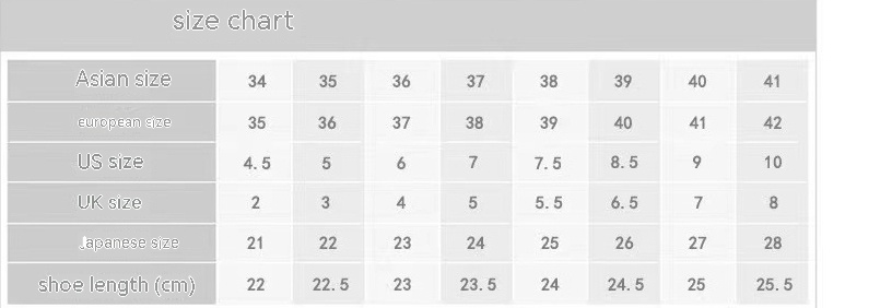 المقاسات: 35، 36، 37، 38، 39، 40، 41، 42