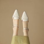صندل نسائي ذو مقدمة مدببة وكعب سميك بتصميم كلاسيكي مغلق من الأمام