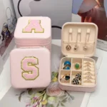 صندوق تخزين مجوهرات صغير مُخصص – حقيبة سفر لوصيفة العروس مع الحرف الأول والاسم، هدية مثالية لعيد الميلاد وعيد الأم