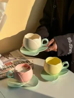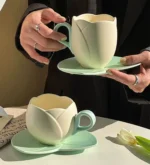 صينية توليب لطيفة تناسب أكواب السيراميك على شكل زهرة، أكواب قهوة حليب علامة، أطباق، مجموعة أكواب مشروبات 350 مل