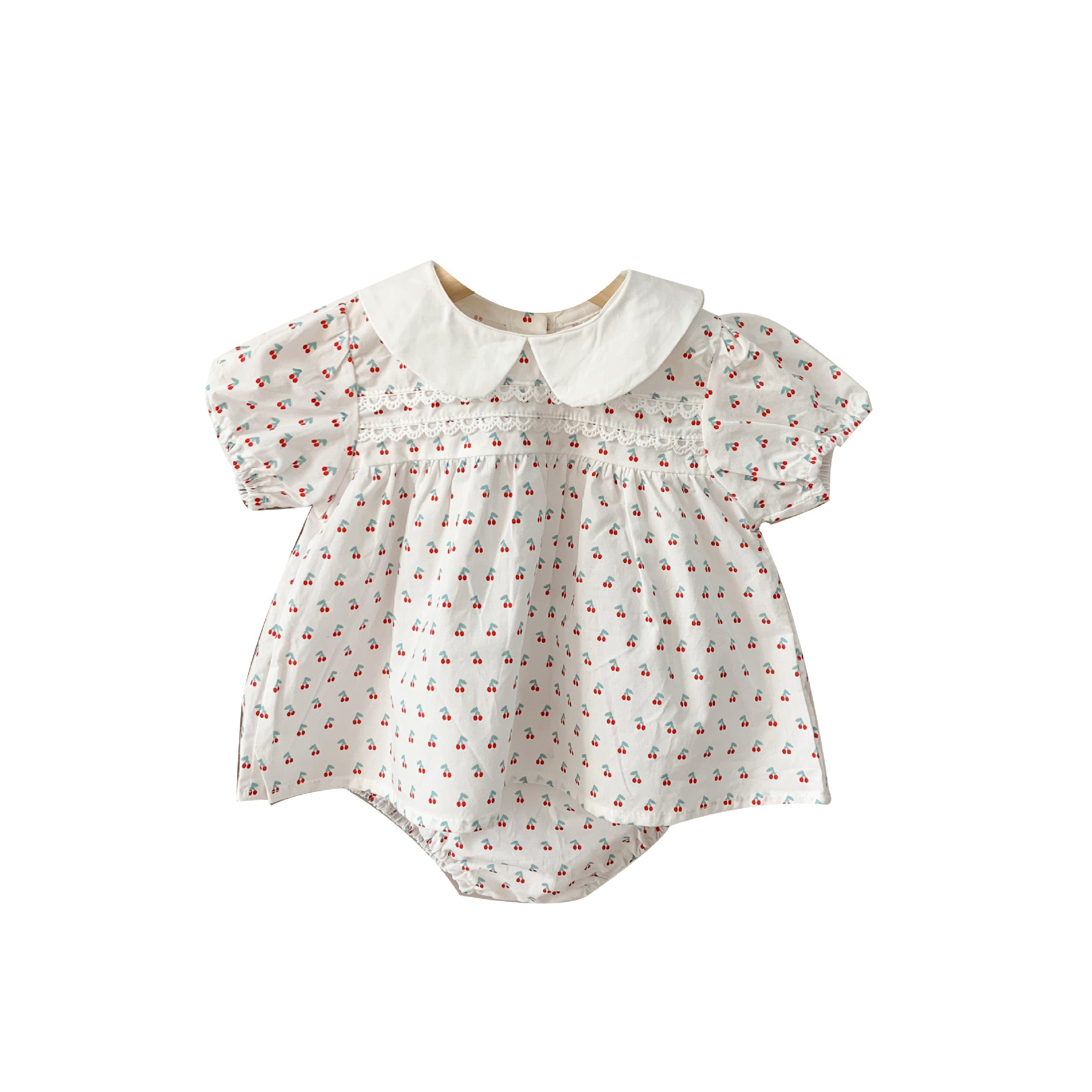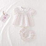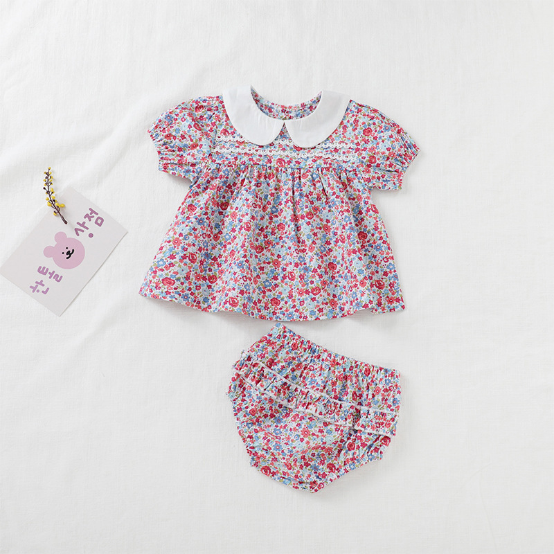 طقم أطفال صيفي كوري مزين بالزهور، قطعتين، بأكمام قصيرة