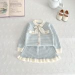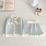 طقم أطفال مكون من قطعتين: سترة وتنورة وكنزة صوفية محبوكة