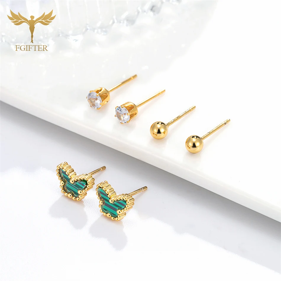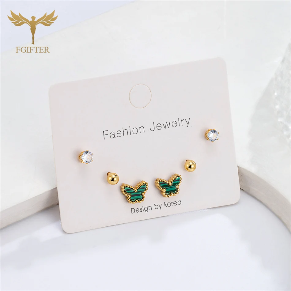 طقم أقراط أنيقة على شكل فراشة وكرات للنساء – زركون تشيكوسلوفاكيا، فولاذ مقاوم للصدأ مضاد للحساسية، هدايا مجوهرات عصرية