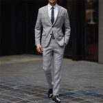 طقم بدلة عمل رجالية من قطعتين بقصة ضيقة ونقشة مربعات