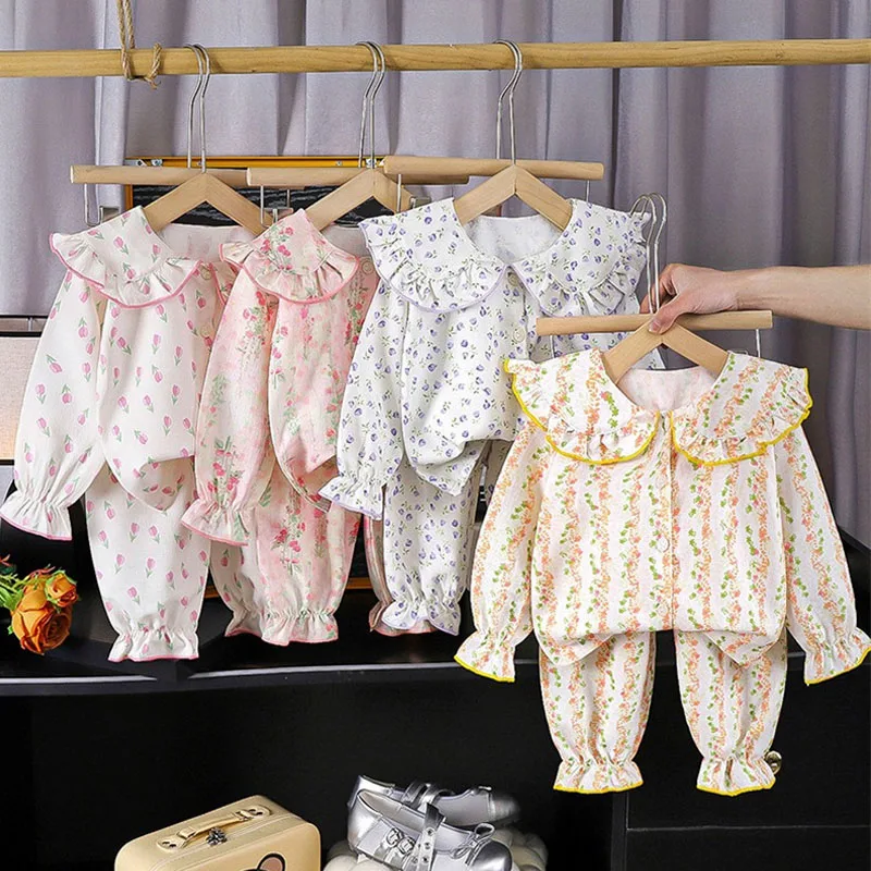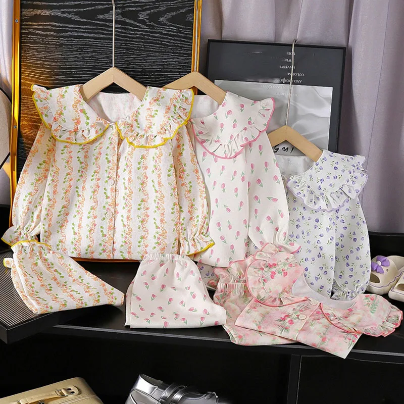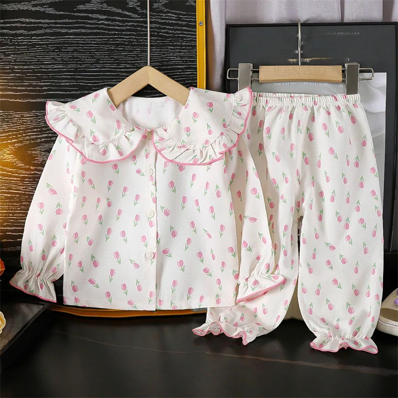 طقم بيجامات صيفي للبنات – ملابس نوم دانتيل على طراز الأميرات مع طوق دمية