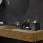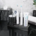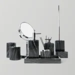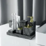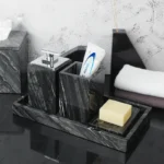 طقم حمام من الرخام الطبيعي الأسود – حامل فرشاة أسنان فاخر، موزع صابون، طبق وصينية