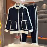 طقم رجالي كاجوال بألوان متداخلة، يتألف من جاكيت بأكمام طويلة وياقة عالية وبنطال رياضي ضيق