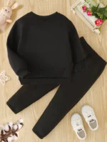 طقم رياضي بطبعة قلوب للبنات – قطعتين – بلوفر وبنطال – خريف