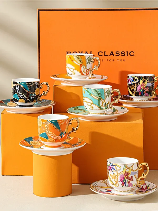 طقم فناجين قهوة وصحن من السيراميك العربي، 12 قطعة